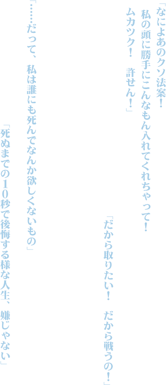 「嫌だ」「理不尽だ」と思った事には決してめげず、最後まで戦い抜く強さを持っている。